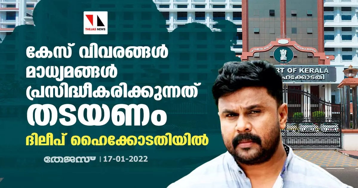 കേസ് വിവരങ്ങൾ മാധ്യമങ്ങള് പ്രസിദ്ധീകരിക്കുന്നത് തടയണം; ദിലീപ് ഹൈക്കോടതിയിൽ