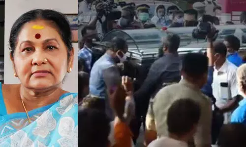 തൃപ്പൂണിത്തുറ ലായം കൂത്തമ്പലത്തിലെ പൊതു ദര്ശനത്തിന് ശേഷം 11.30 ഓടെയാണ് കെപിഎസി ലളിതയുടെ മൃതദേഹം കെഎസ്ആര്ടിസിയുടെ ലോ ഫ്ളോര് ബസില് വിലാപയാത്രയായി തൃശൂരിലേക്ക് കൊണ്ടുപോയത്