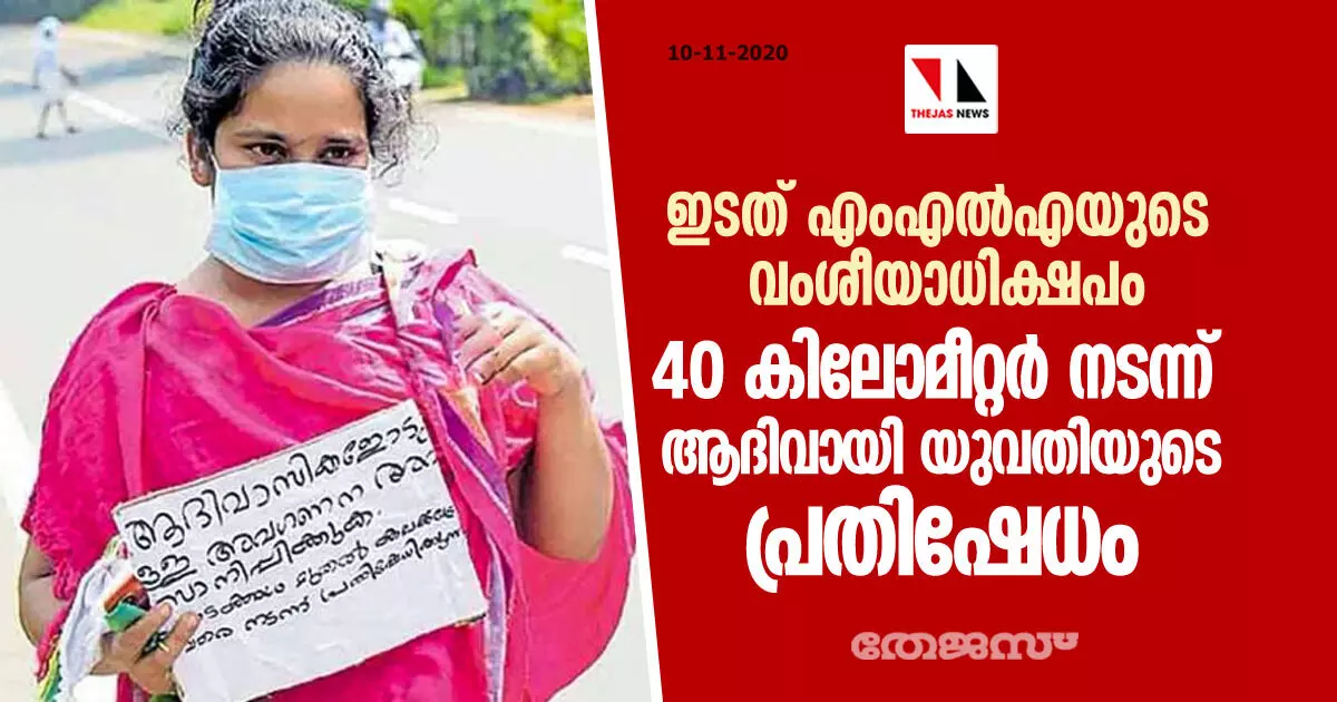 ഇടത് എംഎൽഎയുടെ വംശീയാധിക്ഷപം: 40 കിലോമീറ്റര് നടന്ന് ആദിവായി യുവതിയുടെ പ്രതിഷേധം