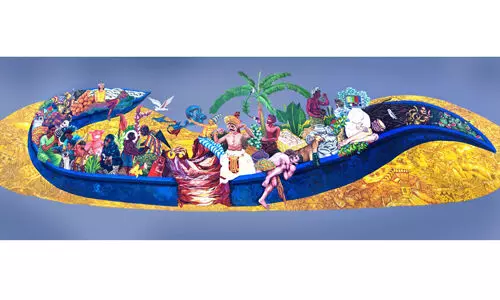 ആലപ്പുഴ: സമകാലിക കലയില് നിന്നും അകലേയ്ക്ക് പോകുന്ന സമൂഹത്തെ തിരിച്ചു വിളിക്കുന്ന തരത്തിലാണ് ലോകമേ തറവാട് കലാ പ്രദര്ശനത്തിലെ ഓരോ പ്രദര്ശനവും. അതിലെ പ്രധാന ആകര്ഷണങ്ങളിലൊന്നാണ് നോഹയുടെ പേടകമെന്ന ആശയത്തില് തീര്ത്ത ചുവര് ചിത്രം. റോഡിലൂടെ പോകുന്നവര്ക്ക് പോലും വിസ്മയക്കാഴ്ചയൊരുക്കുന്ന തരത്തില് പോര്ട്ട് മ്യൂസിയത്തിന്റെ മതിലിലാണീ ചിത്രം.നിരവധി മനുഷ്യര്, സസ്യ-ജന്തുജാലങ്ങള്, ആധുനിക മനുഷ്യന് എപ്പോഴും ആവശ്യമുള്ള ഗ്യാസ്, ഫോണ്, ടിവി എന്നിവ ഉള്പ്പെടുന്നതാണീ കലാസൃഷ്ടി.