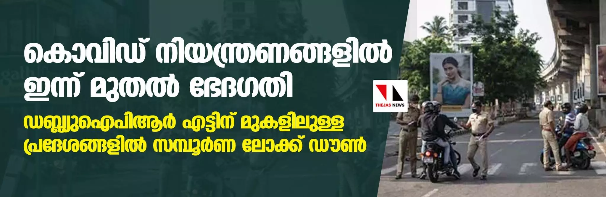 കൊവിഡ് നിയന്ത്രണങ്ങളില് ഇന്ന് മുതല് ഭേദഗതി; ഡബ്ല്യുഐപിആര് എട്ടിന് മുകളിലുള്ള പ്രദേശങ്ങളില് സമ്പൂര്ണ ലോക്ക് ഡൗണ്