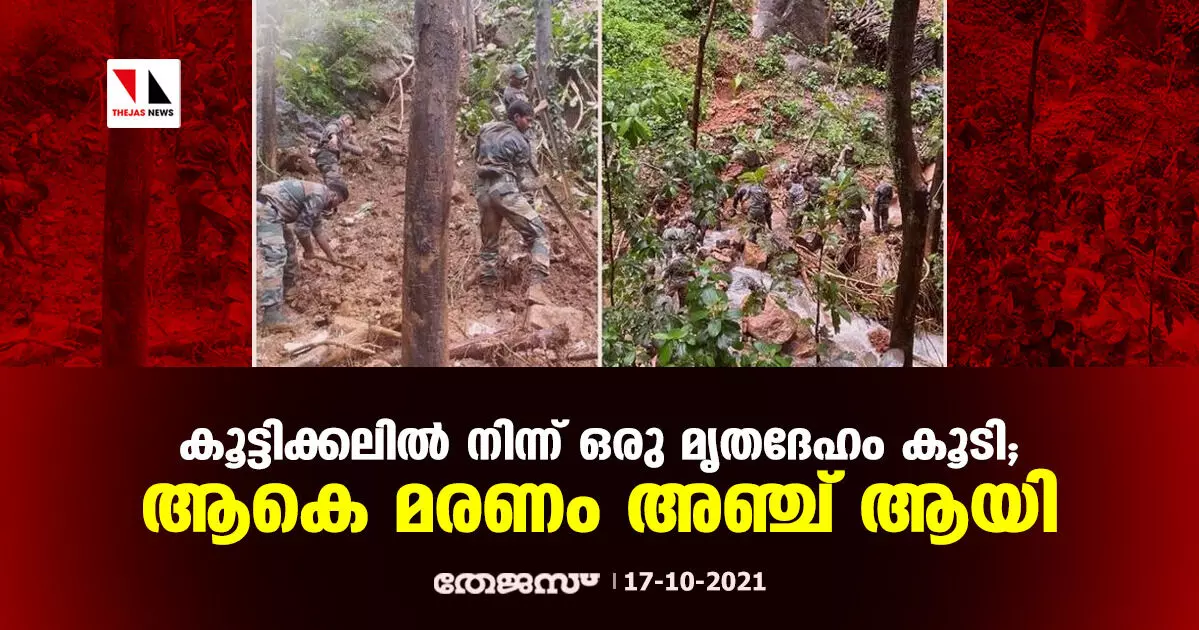 കൂട്ടിക്കലിൽ നിന്ന് ഒരു മൃതദേഹം കൂടി; സ്ഥിരീകരിച്ച മരണം അഞ്ച് ആയി