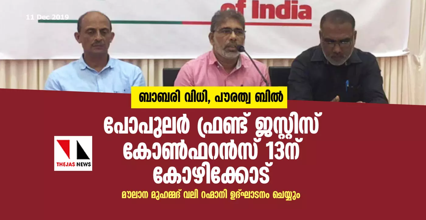 ബാബരി വിധി, പൗരത്വ ബില്: പോപുലര് ഫ്രണ്ട് ജസ്റ്റിസ് കോണ്ഫറന്സ് 13ന് കോഴിക്കോട്