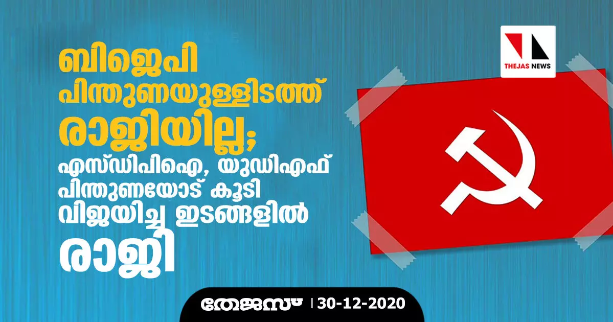 ബിജെപി പിന്തുണയുള്ളിടത്ത് രാജിയില്ല; എസ്ഡിപിഐ, യുഡിഎഫ് പിന്തുണയോട് കൂടി വിജയിച്ച ഇടങ്ങളിൽ രാജി
