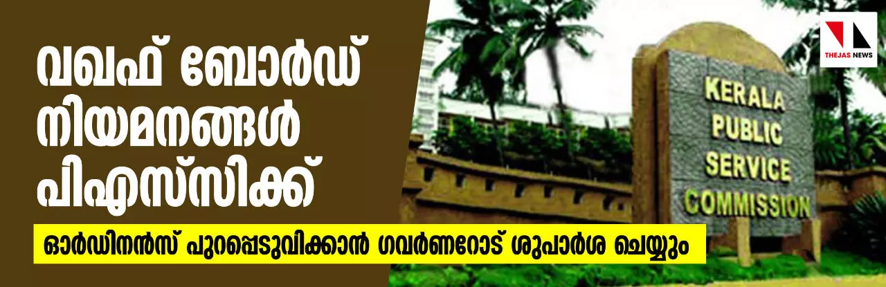 വഖഫ് ബോര്ഡ് നിയമനങ്ങള് പി എസ് സിക്ക്; ഓര്ഡിനന്സ് പുറപ്പെടുവിക്കാൻ ഗവര്ണറോട് ശുപാര്ശ ചെയ്യും