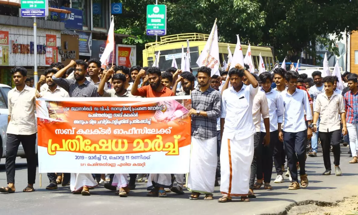 പ്രചാരണ ബോര്ഡ് കലക്്ടര് ചവിട്ടിപ്പൊളിച്ചെന്ന്; പ്രതിഷേധവുമായി എസ്എഫ്ഐ