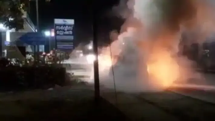 ഓടിക്കൊണ്ടിരുന്ന കാറിന് തീപിടിച്ചു, യാത്രക്കാരൻ അദ്ഭുതകരമായി രക്ഷപ്പെട്ടു