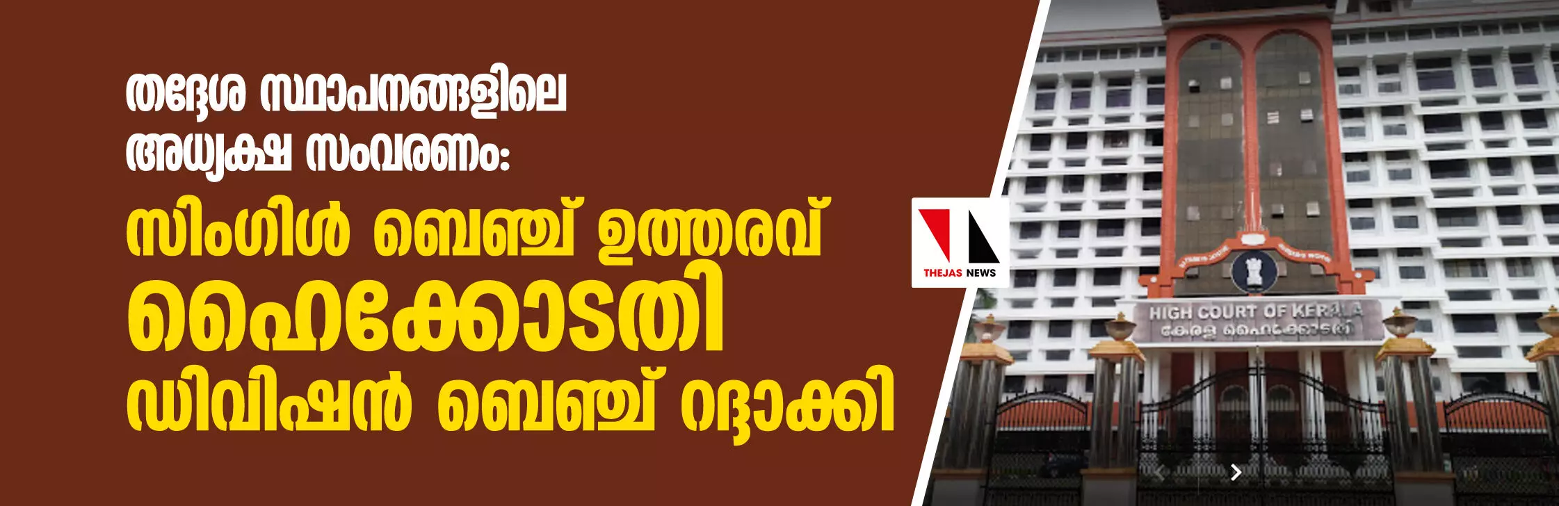 തദ്ദേശ സ്ഥാപനങ്ങളിലെ അധ്യക്ഷ സംവരണം: സിംഗിള് ബെഞ്ച് ഉത്തരവ് ഹൈക്കോടതി ഡിവിഷന് ബെഞ്ച് റദ്ദാക്കി