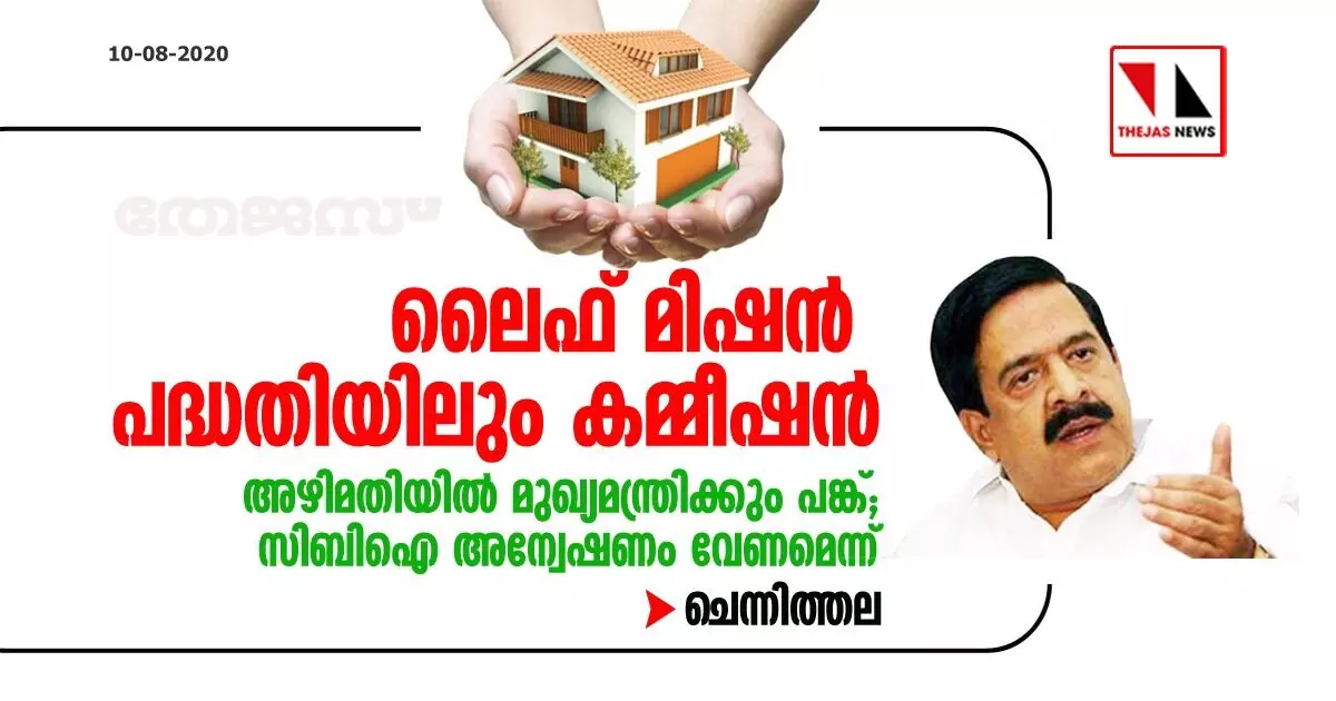 ലൈഫ് മിഷൻ പദ്ധതിയിലും കമ്മീഷൻ: അഴിമതിയിൽ മുഖ്യമന്ത്രിക്കും പങ്ക്; സിബിഐ അന്വേഷണം വേണമെന്ന് ചെന്നിത്തല