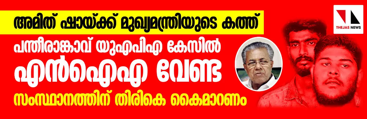 അമിത് ഷായ്ക്ക് മുഖ്യമന്ത്രിയുടെ കത്ത്: പന്തീരാങ്കാവ് യുഎപിഎ കേസിൽ എൻഐഎ വേണ്ട; സംസ്ഥാനത്തിന് തിരികെ കൈമാറണം