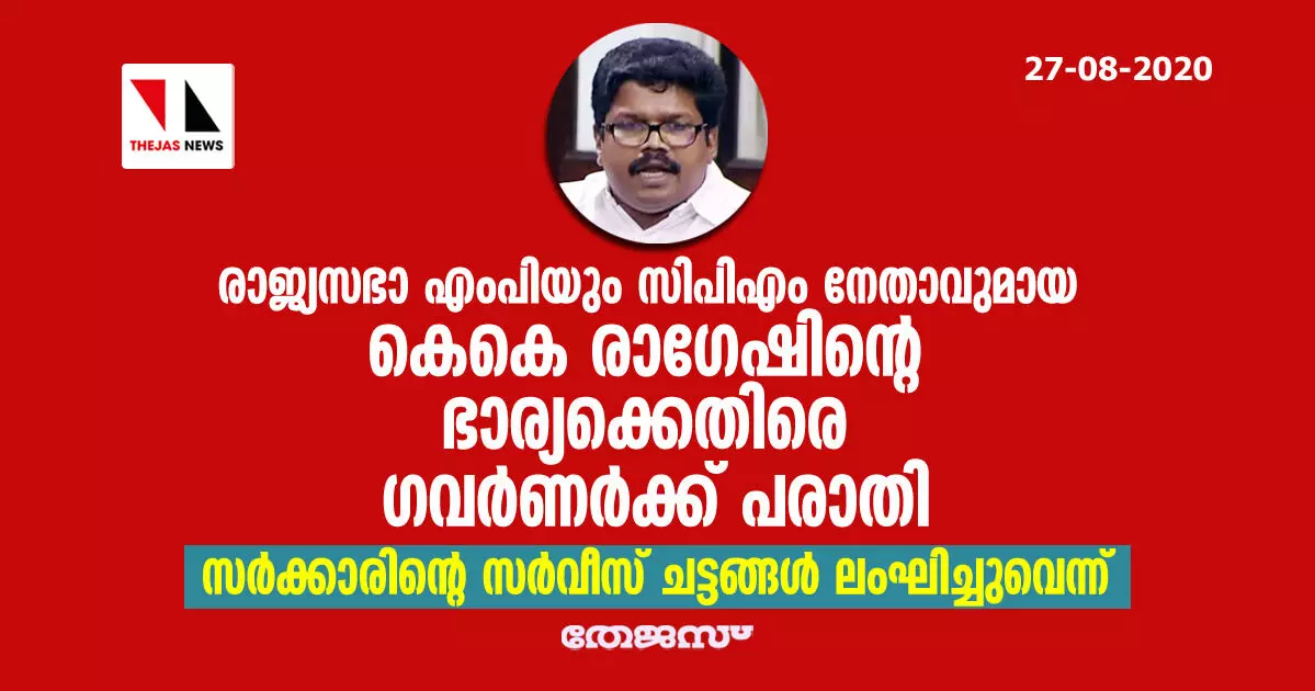 സർക്കാരിന്റെ സർവ്വീസ് ചട്ടങ്ങൾ ലംഘിച്ചുവെന്ന്; കെ കെ രാഗേഷിന്റെ ഭാര്യക്കെതിരെ ഗവർണർക്ക് പരാതി