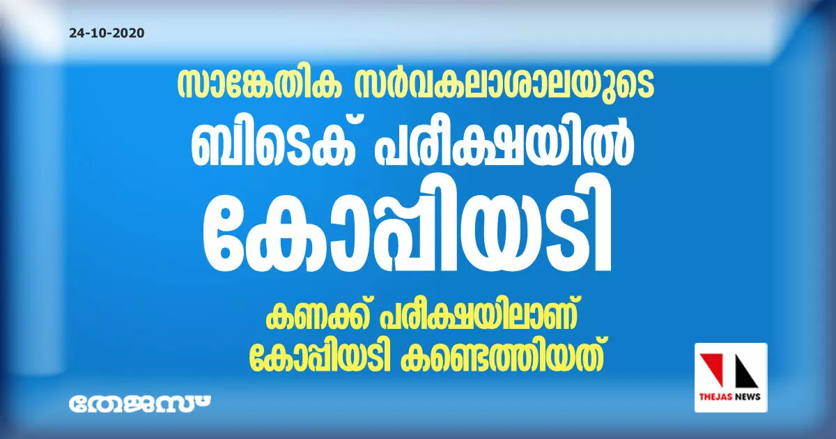 സാങ്കേതിക സർവകലാശാലയുടെ ബിടെക് പരീക്ഷയിൽ കോപ്പിയടി