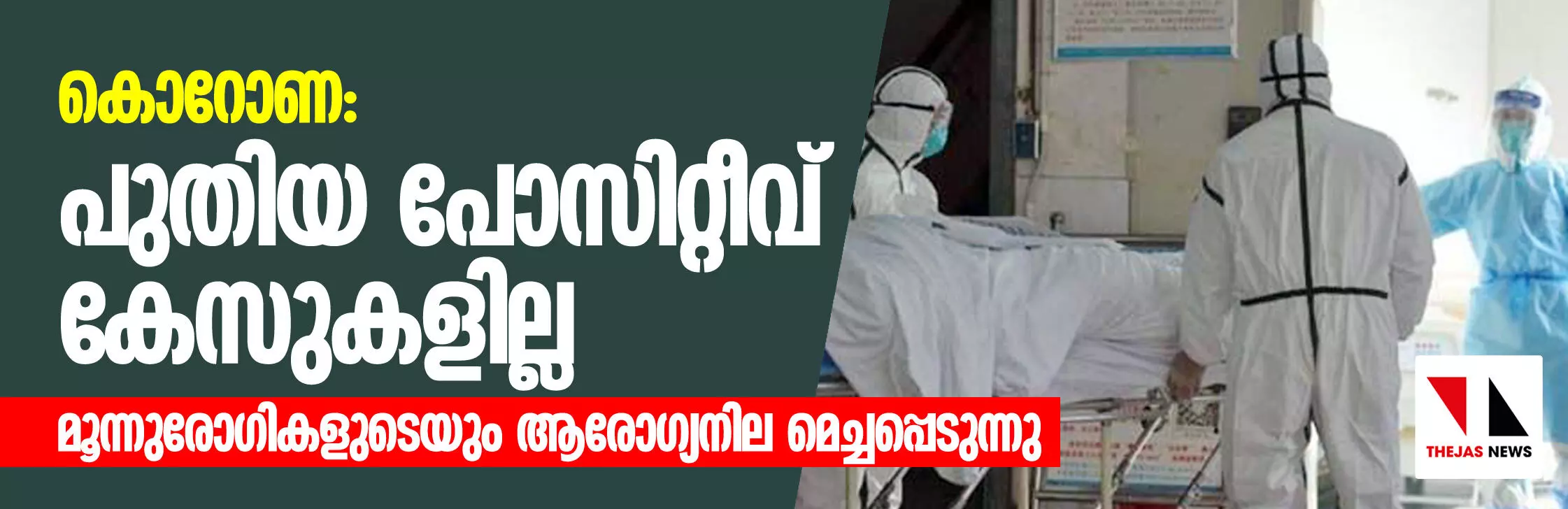 കൊറോണ: പുതിയ പോസിറ്റീവ് കേസുകളില്ല; മൂന്നുരോഗികളുടെയും ആരോഗ്യനില മെച്ചപ്പെടുന്നു