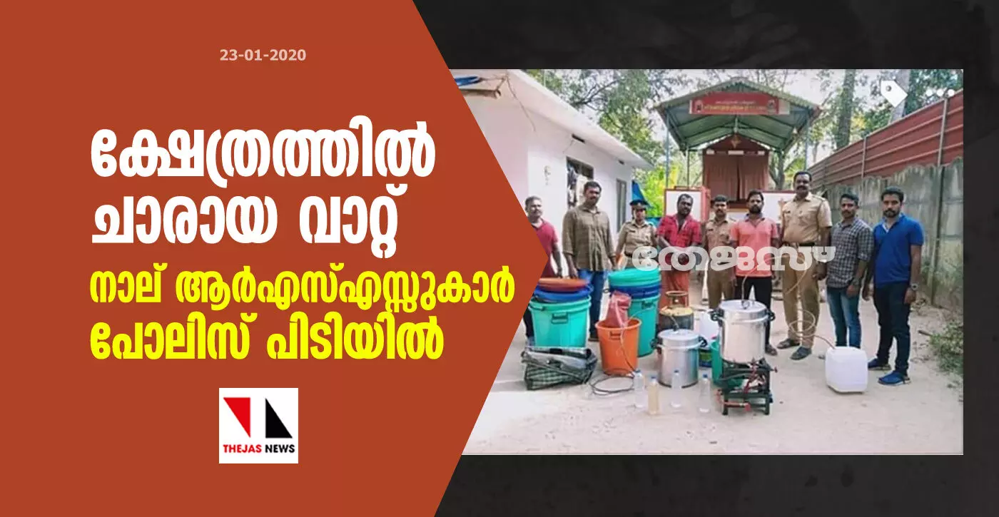 ക്ഷേത്രത്തില് ചാരായ വാറ്റ്; നാല് ആര്എസ്എസ്സുകാര് പോലിസ് പിടിയില്