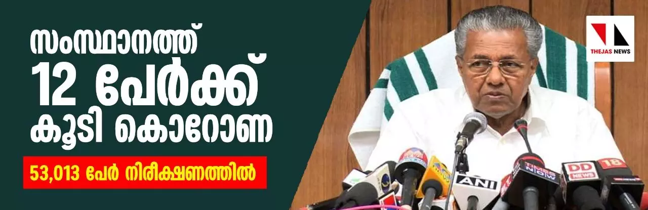 സംസ്ഥാനത്ത് 12 പേര്ക്ക് കൂടി കൊറോണ സ്ഥിരീകരിച്ചു