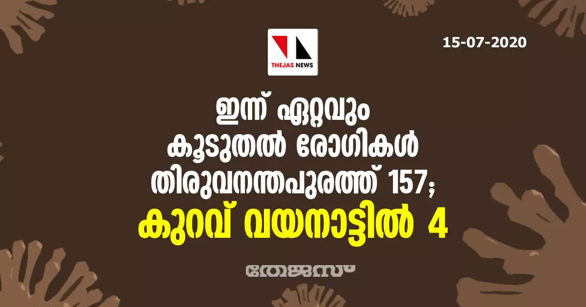ഇന്ന് ഏറ്റവും കൂടുതല് രോഗികള് തിരുവനന്തപുരത്ത്- 157; കുറവ് വയനാട്ടില്- 4