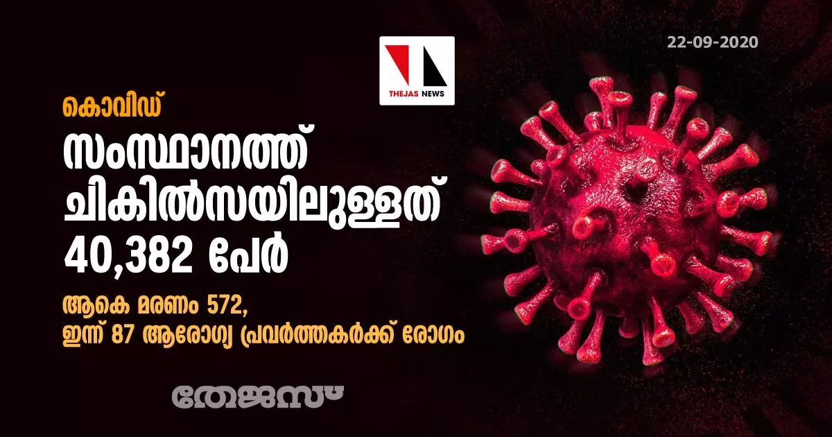 കൊവിഡ്: സംസ്ഥാനത്ത് ചികിൽസയിലുള്ളത് 40,382 പേർ; ആകെ മരണം 572, ഇന്ന് 87 ആരോഗ്യ പ്രവർത്തകർക്ക് രോഗം