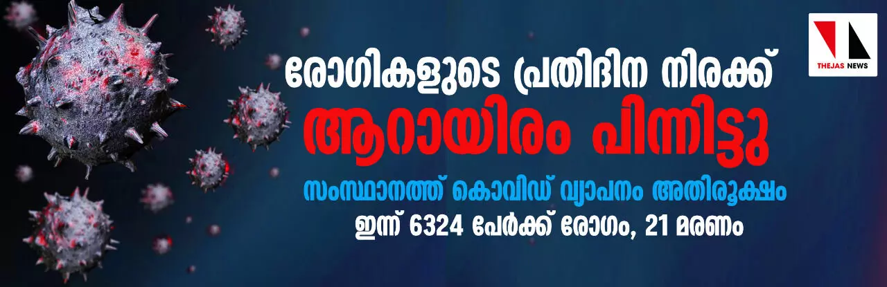 സംസ്ഥാനത്ത് കൊവിഡ് വ്യാപനം അതിരൂക്ഷം; ഇന്ന് 6324 പേര്ക്ക് രോഗം, 21 മരണം