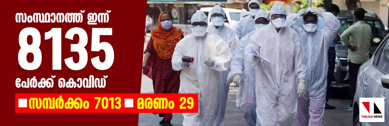 കൊവിഡ് വ്യാപനം അതിരൂക്ഷമായി തുടരുന്നു; സംസ്ഥാനത്ത് ഇന്ന് 8135 പേര്ക്ക് രോഗം, 29 മരണം