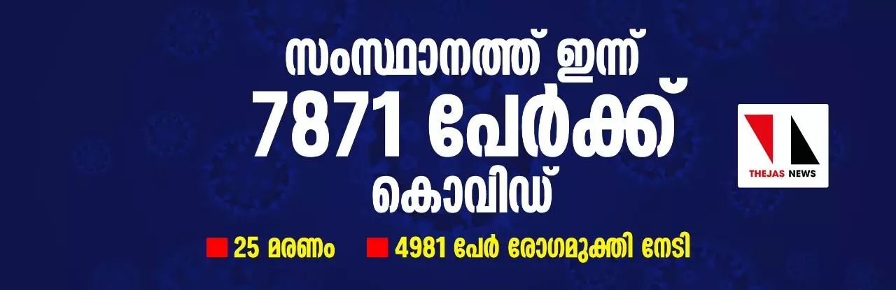 സംസ്ഥാനത്ത് ഇന്ന് 7871 പേര്ക്ക് കൊവിഡ്; 25 മരണം, 4981 പേര് രോഗമുക്തി നേടി