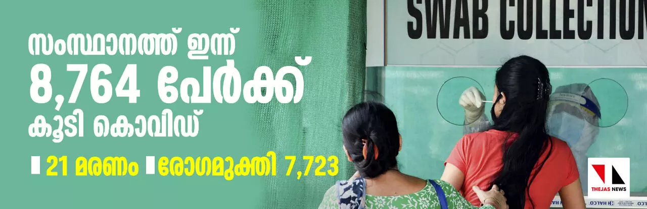 സംസ്ഥാനത്ത് 8764 പേര്ക്ക് കൂടി കൊവിഡ്; 7723 പേര് രോഗമുക്തി നേടി; ചികിത്സയിലുള്ളവര് 95,407