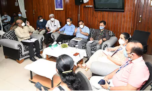 കലക്ട്രേറ്റിലെത്തിയ സംഘം ജില്ല കലക്ടര് എ അലക്സാണ്ടറുമായി ചര്ച്ച നടത്തി. തുടര്ന്ന് ജില്ലയിലെ കൊവിഡ് പ്രതിരോധ പ്രവര്ത്തനവുമായി ബന്ധപ്പെടുന്ന ആരോഗ്യ പ്രവര്ത്തകരുടെ യോഗം ചേര്ന്നു. കലക്ടറും ആരോഗ്യ വകുപ്പിലെ ഉദ്യോഗസ്ഥരും ജില്ലയിലെ കൊവിഡ് പ്രവര്ത്തനങ്ങള് സംഘത്തിന് വിവരിച്ചു. കണ്ടെയ്ന് മെന്റ് സോണുകളായി പ്രഖ്യാപിച്ച പ്രദേശങ്ങളില് രോഗം വ്യാപകമായ പ്രദേശങ്ങള് കേന്ദ്രീകരിച്ച് അനുയോജ്യമായ നിയന്ത്രണങ്ങളും കൊവിഡ് പ്രതിരോധ നടപടികളും ശക്തമാക്കി മുന്നോട്ടുപോകണമെന്ന് സംഘം ചൂണ്ടിക്കാട്ടി.