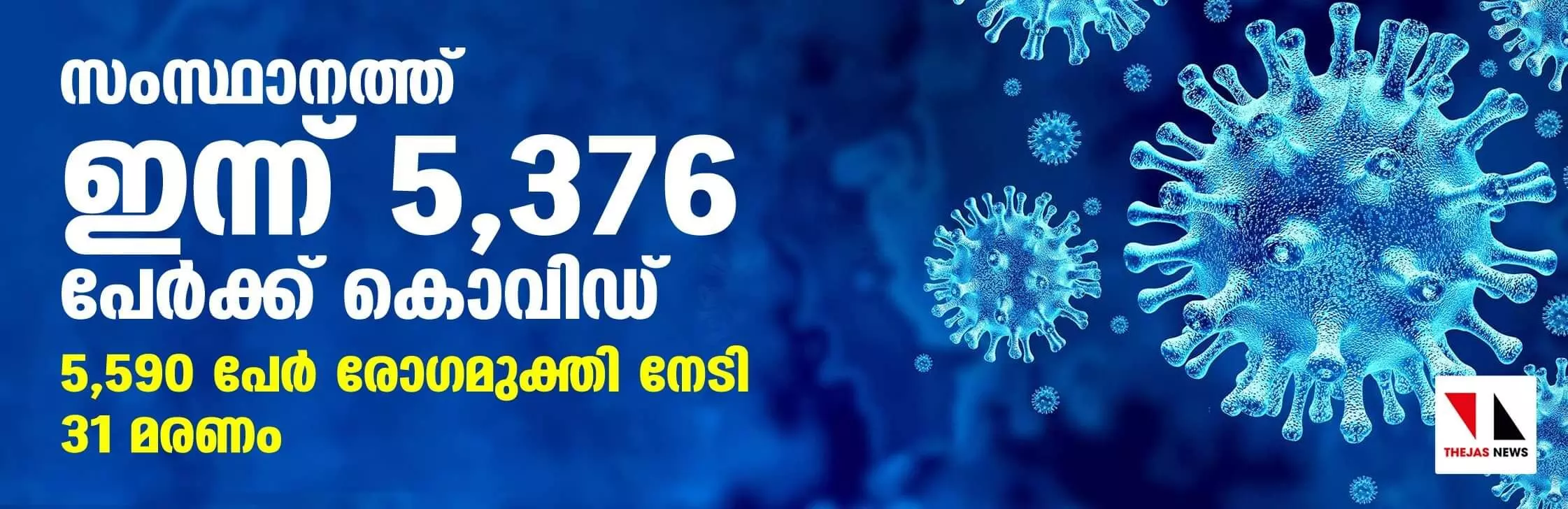 സംസ്ഥാനത്ത് ഇന്ന് 5,376 കൊവിഡ് രോഗികള്; 5,590 പേര്ക്ക് രോഗമുക്തി, 31 മരണം