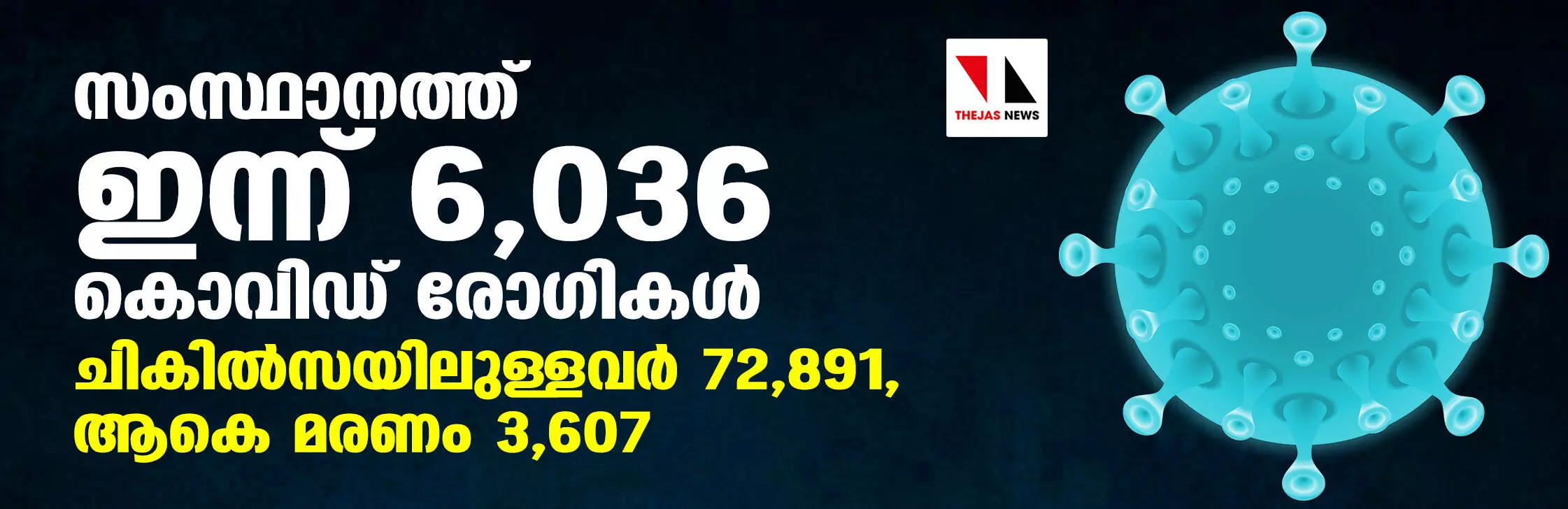 സംസ്ഥാനത്ത് ഇന്ന് 6,036 കൊവിഡ് രോഗികള്; ചികില്സയിലുള്ളവര് 72,891, ആകെ മരണം 3,607