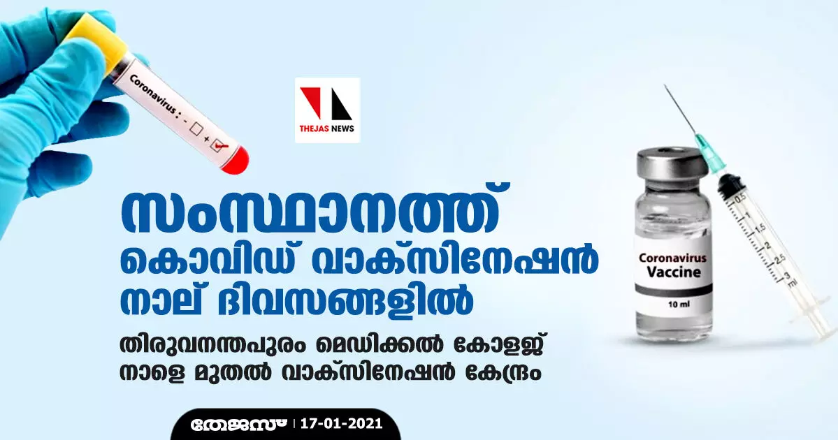 സംസ്ഥാനത്ത് കൊവിഡ് വാക്സിനേഷന് നാല് ദിവസങ്ങളില്; തിരുവനന്തപുരം മെഡിക്കല് കോളജ് നാളെ മുതല് വാക്സിനേഷന് കേന്ദ്രം
