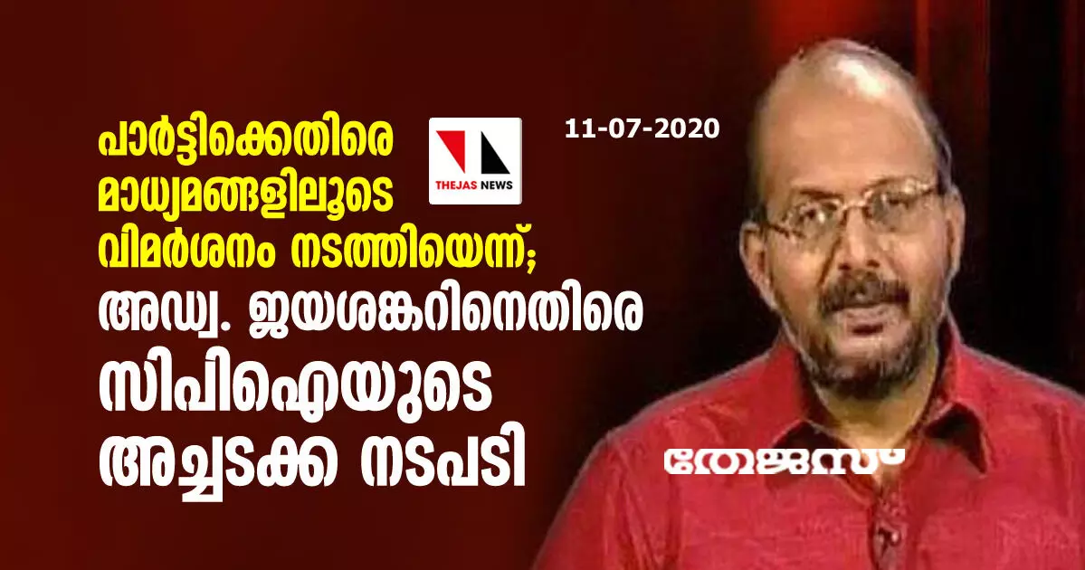പാര്ടിക്കെതിരെ മാധ്യമങ്ങളിലുടെ വിമര്ശനം നടത്തിയെന്ന്;അഡ്വ.ജയശങ്കറിനെതിരെ സിപി ഐയുടെ അച്ചടക്ക നടപടി