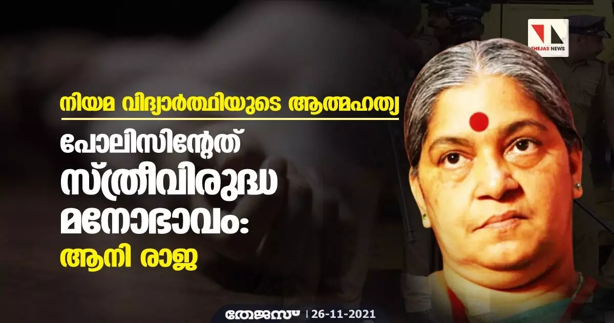 നിയമ വിദ്യാർത്ഥിയുടെ ആത്മഹത്യ; പോലിസിന്റേത് സ്ത്രീവിരുദ്ധ മനോഭാവം: ആനി രാജ