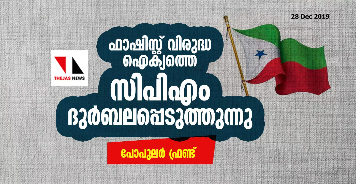 ഫാഷിസ്റ്റ് വിരുദ്ധ ഐക്യത്തെ സിപിഎം ദുര്ബലപ്പെടുത്തുന്നു: പോപുലര് ഫ്രണ്ട്