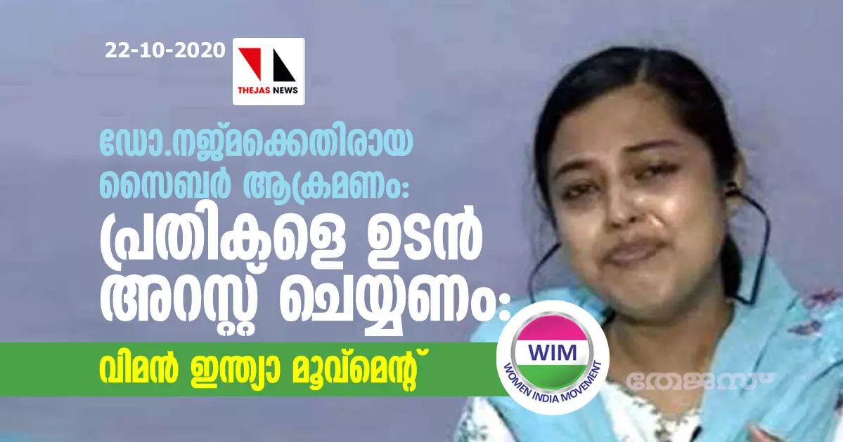 ഡോ.നജ്മക്കെതിരായ സൈബര് ആക്രമണം; പ്രതികളെ ഉടന് അറസ്റ്റ് ചെയ്യണം: വിമന് ഇന്ത്യാ മൂവ്മെന്റ്