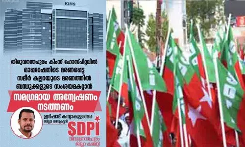 ശസ്ത്രക്രിയ്ക്കിടെ സമീര് കല്ലറയുടെ മരണം: സമഗ്രാന്വേഷണം നടത്തണമെന്ന് എസ്ഡിപിഐ