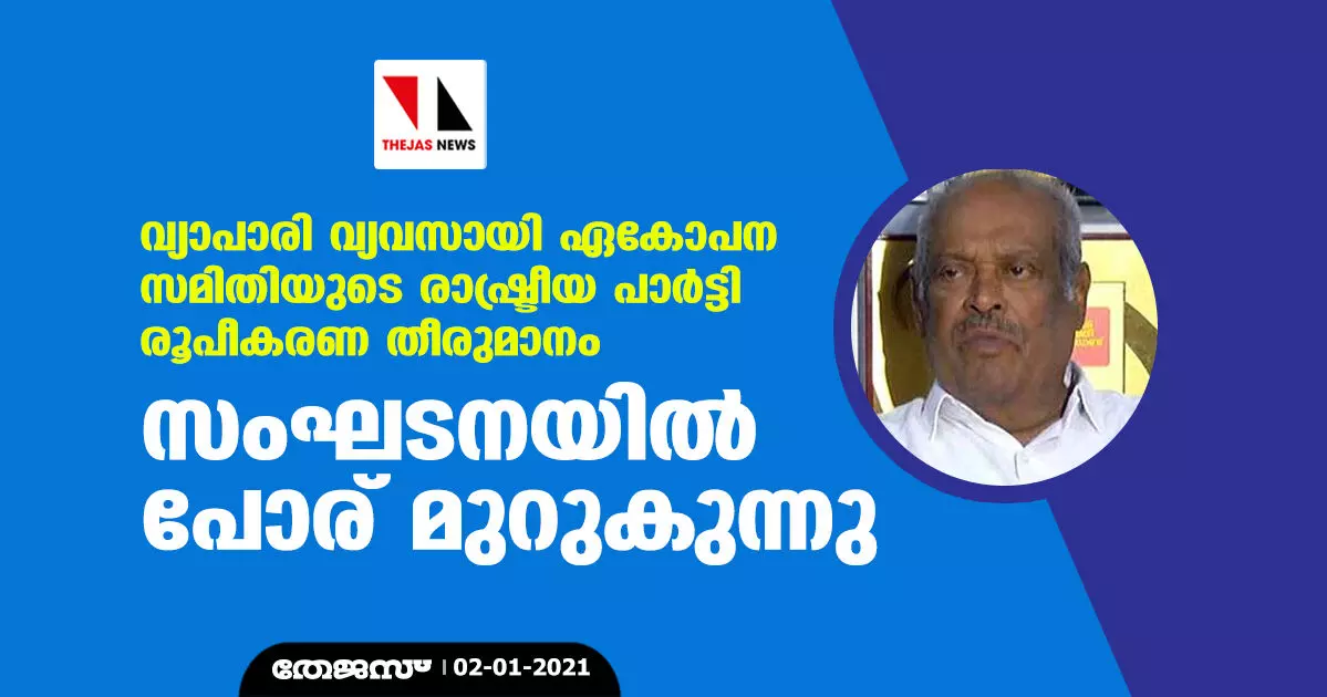വ്യാപാരി വ്യവസായി ഏകോപന സമിതിയുടെ രാഷ്ട്രീയ പാർട്ടി രൂപീകരണ തീരുമാനം; സംഘടനയിൽ പോര് മുറുകുന്നു