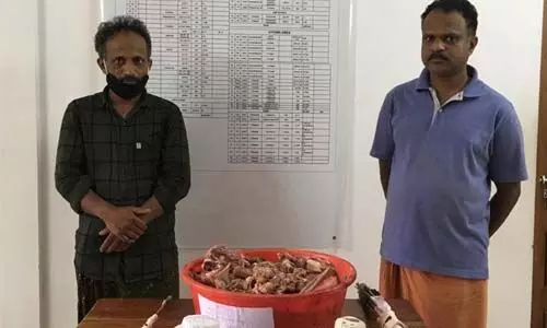 കണിയാമ്പറ്റ സ്വദേശിയായ ശിവദാസന്, ചൂരല്മല അരംമ്പറ്റക്കുന്ന് സ്വദേശി ബാബു എന്നിവരാണ് പിടിയിലായത്. കല്പ്പറ്റ ഫ്ളയിങ് സ്ക്വാഡ് റെയ്ഞ്ച് ഫോറസ്റ്റ് ഓഫിസറായ എം പത്മനാഭന് ലഭിച്ച രഹസ്യവിവരത്തിന്റെ അടിസ്ഥാനത്തിലായിരുന്നു തലയ്ക്കല് ചന്ദു കേന്ദ്രത്തില് പരിശോധന നടത്തിയത്. സംഭവത്തില് ഇനിയും പ്രതികളുണ്ടെന്നാണ് അന്വേഷണസംഘത്തിന്റെ നിഗമനം.