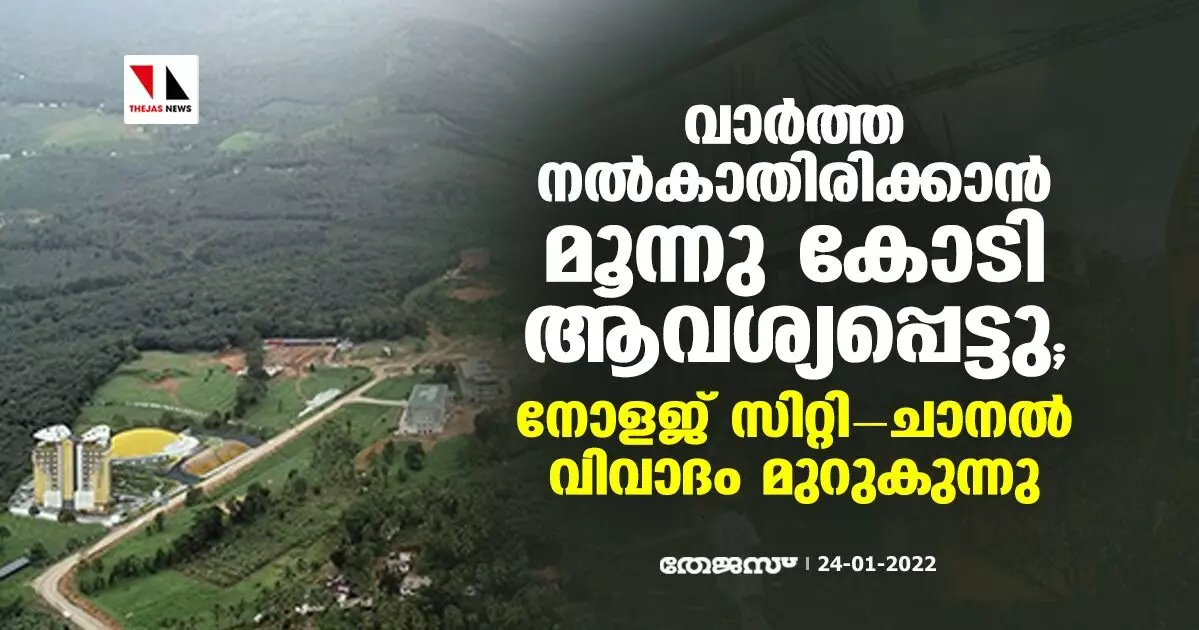വാര്ത്ത നല്കാതിരിക്കാന് മൂന്നു കോടി ആവശ്യപ്പെട്ടു; നോളജ് സിറ്റി-ചാനല് വിവാദം മുറുകുന്നു