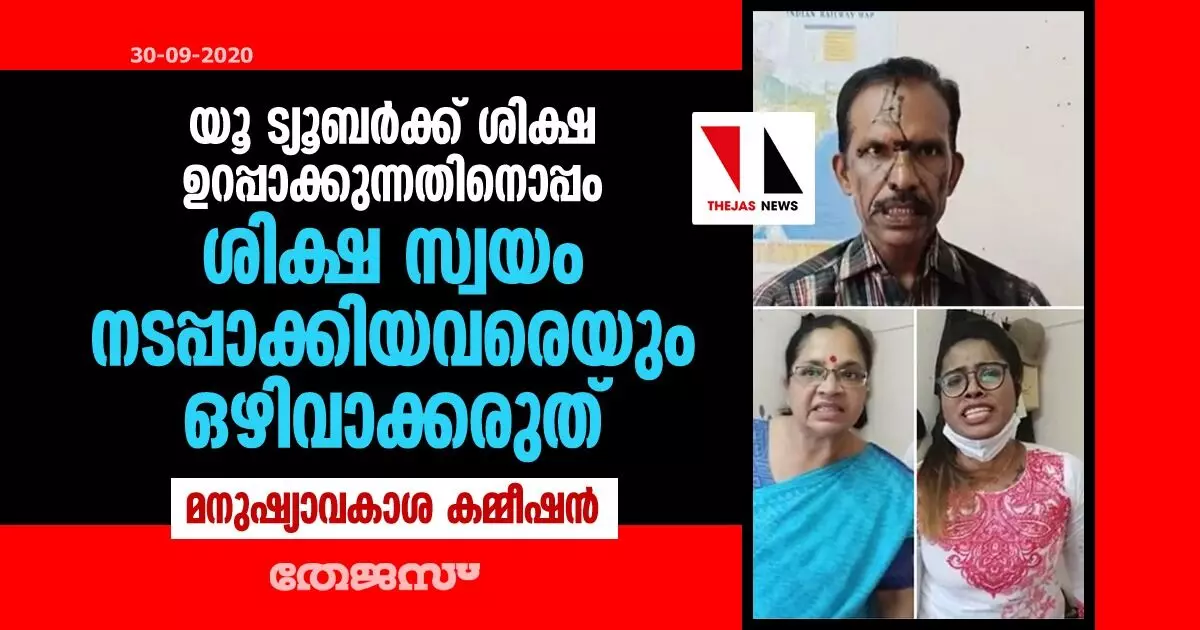 യൂ ട്യൂബര്ക്ക് ശിക്ഷ ഉറപ്പാക്കുന്നതിനൊപ്പം ശിക്ഷ സ്വയം നടപ്പാക്കിയവരെയും ഒഴിവാക്കരുത്: മനുഷ്യാവകാശ കമ്മീഷന്