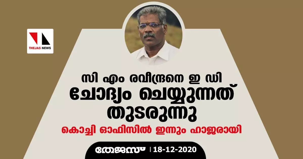 സി എം രവീന്ദ്രനെ ഇ ഡി ചോദ്യം ചെയ്യുന്നത് തുടരുന്നു; കൊച്ചി ഓഫിസില് ഇന്നും ഹാജരായി