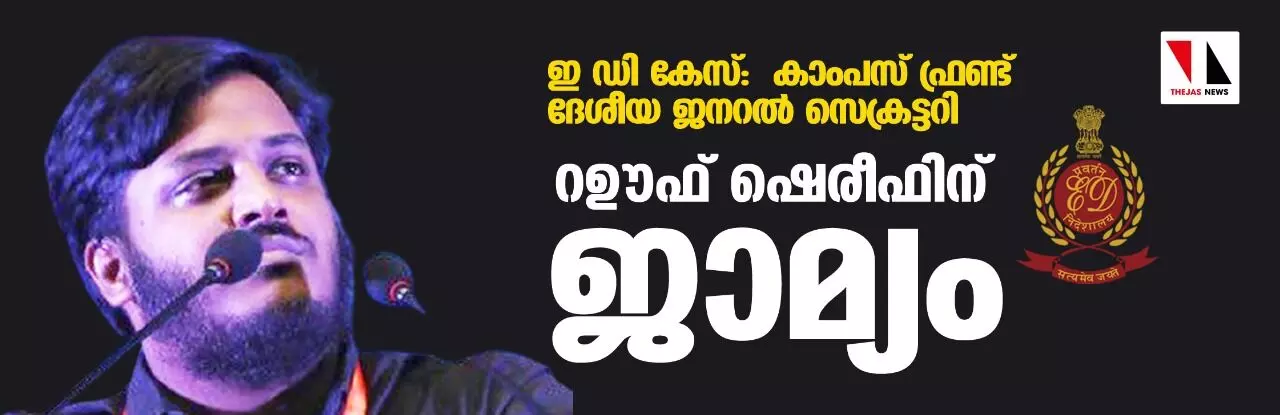 ഇ ഡി കേസ്: കാംപസ് ഫ്രണ്ട് ദേശീയ ജനറല് സെക്രട്ടറി റഊഫ് ഷെരീഫിന് ജാമ്യം