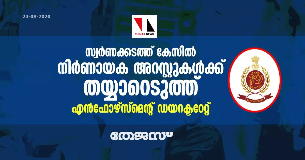 സ്വര്ണക്കടത്ത് കേസ്: നിര്ണായക അറസ്റ്റുകള്ക്ക് തയ്യാറെടുത്ത് എന്ഫോഴ്സ്മെന്റ് ഡയറക്ടറേറ്റ്