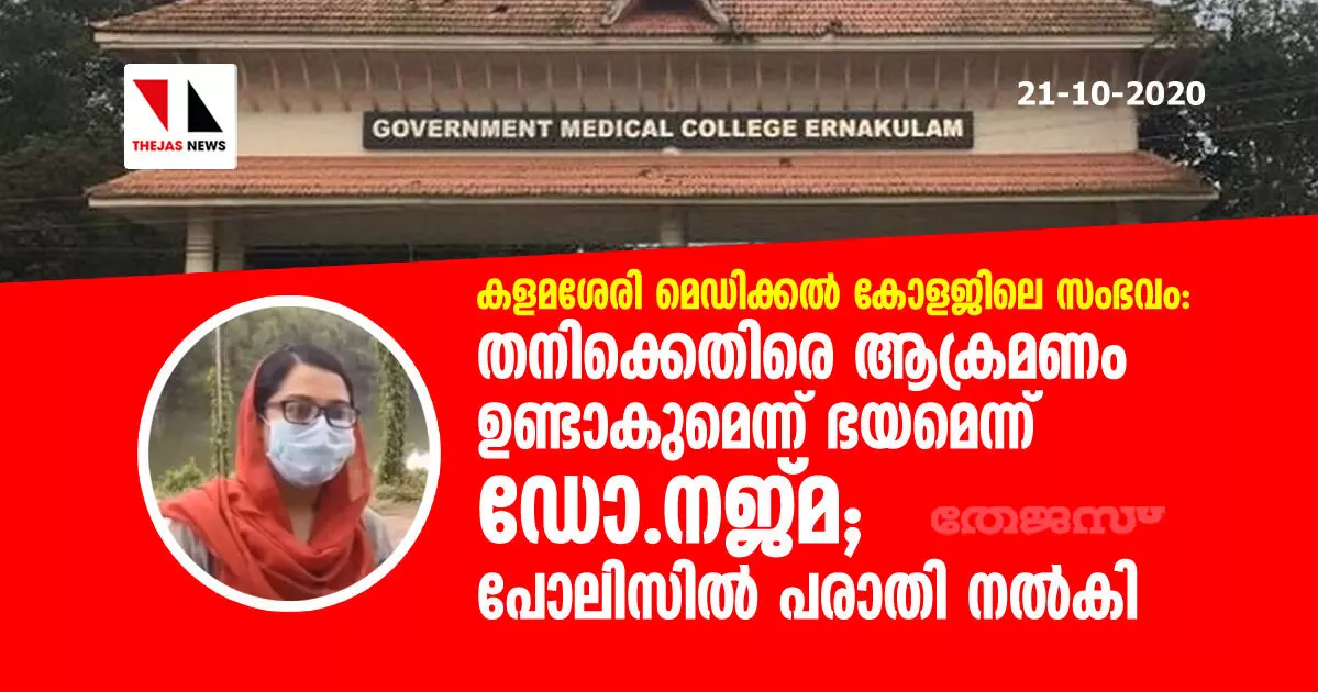 കളമശേരി മെഡിക്കല് കോളജിലെ സംഭവം: തനിക്കെതിരെ ആക്രമണം ഉണ്ടാകുമെന്ന് ഭയമെന്ന് ഡോ.നജ്മ; പോലിസില് പരാതി നല്കി
