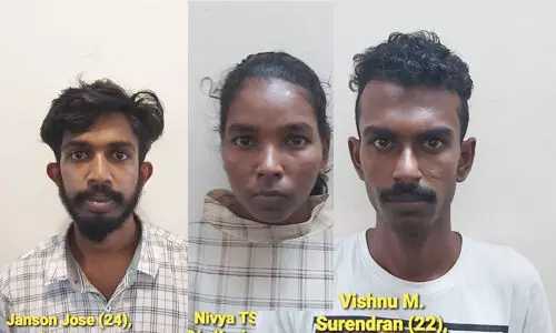 കൊച്ചി: നെട്ടൂര് വെളിപ്പറമ്പില് ഫഹദ് ഹുസൈന് (19) നെ ലഹരി വില്പന മാഫിയ സംഘം വെട്ടിക്കൊലപ്പെടുത്തിയകേസില് മൂന്ന് പ്രധാനപ്രതികള് കൂടി അറസ്റ്റിലായി. കഴിഞ്ഞ ജൂലായ് 24ന് പനങ്ങാട് പോലീസ് മൂന്നര കിലോഗ്രാം കഞ്ചാവ് പിടികൂടിയ കേസില് രണ്ടാംപ്രതിയായിരുന്ന പനങ്ങാട് ഒല്ലേരി റോഡില് തിട്ടയില് വീട്ടില് ശ്രുതി എന്ന് വിളിക്കുന്ന നിവ്യ(26), ഇവരുടെ കാമുകന് അടിമാലി ആനച്ചാല് സ്വദേശി ജാന്സന് ജോസ് (24), അടിമാലി മോളേത്തു പുത്തന്പുരയില് വിഷ്ണു എം സുരേന്ദ്രന് (23) എന്നിവരെയാണ് തൃക്കാക്കര അസി.കമ്മീഷണര് കെ എം ജിജിമോന്, പനങ്ങാട് ഇന്സ്പെക്ടര് എ അനന്തലാല് എന്നിവരുടെ നേതൃത്വത്തിലുള്ള പോലിസ് സംഘം അറസ്റ്റു ചെയ്തത്.