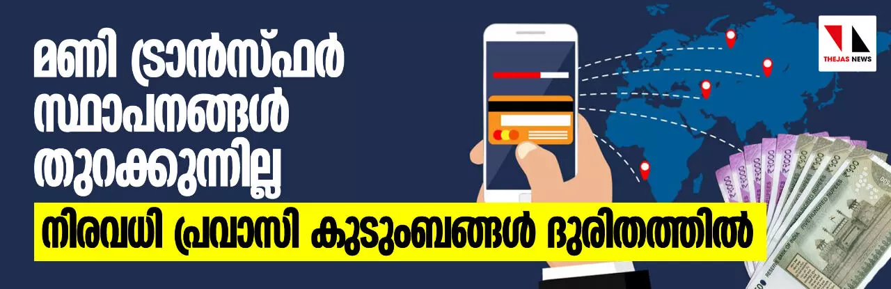 രാജ്യത്തെ മണി ട്രാൻസ്ഫർ സ്ഥാപനങ്ങൾക്കു തുറന്നു പ്രവർത്തിക്കാൻ കഴിഞ്ഞ മാസം 24നു കേന്ദ്ര സർക്കാർ അനുമതി നൽകിയെങ്കിലും സംസ്ഥാനത്ത് ഭൂരിഭാഗം സ്ഥാപനങ്ങളും അടഞ്ഞു കിടക്കുകയാണ്. ഇതുകാരണം വിദേശത്തുനിന്ന് പ്രവാസികൾ നാട്ടിലെ ബന്ധുക്കൾക്ക് അടിയന്തര ആവശ്യങ്ങൾക്കായി അയയ്ക്കുന്ന പണം പോലും പിൻവലിക്കാൻ കഴിയാത്ത സ്ഥിതിയാണ്.