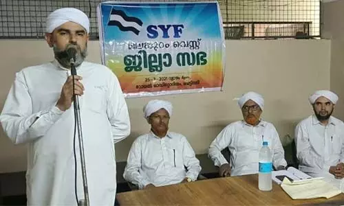 പ്രസിഡന്റ് സയ്യിദ് ഹസന് ജിഫ്രിയുടെ അധ്യക്ഷതയില് ചേര്ന്ന എസ്വൈഎഫ് ജില്ലാസഭ സംസ്ഥാന പ്രസിഡന്റ് സയ്യിദ് ഹാശിം ബാഫഖി കൊയിലാണ്ടി ഉദ്ഘാടനം ചെയ്തു. ത്രിവര്ഷ കര്മപദ്ധതി സമര്പ്പണം സദഖത്തുല്ല മൗലവി കാടാമ്പുഴ നിര്വഹിച്ചു. സംസ്ഥാന സെക്രട്ടറി അശ്റഫ് ബാഖവി കാളികാവ് സമാപനസന്ദേശം നല്കി. പുതിയ ഭാരവാഹികളായി സി എ ജലീല് വഹബി (പ്രസിഡന്റ്), സയ്യിദ് ഹസന് ജിഫ്രി മൂന്നിയൂര് (ജനറല് സെക്രട്ടറി), റഫീഖ് മൗലവി പുകയൂര് (ട്രഷറര്) എന്നിവരെ തിരഞ്ഞെടുത്തു. ജലീല് വഹബി, മൊയ്തീന് കുട്ടി മന്നാനി സംസാരിച്ചു.