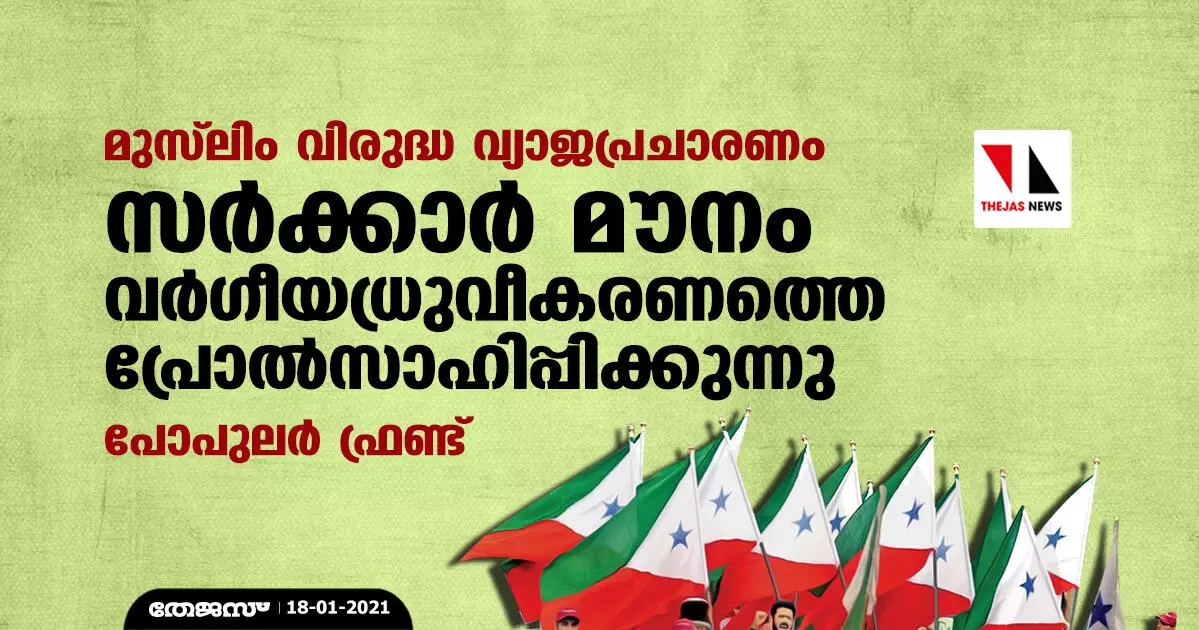 മുസ്ലിം വിരുദ്ധ വ്യാജപ്രചാരണം: സര്ക്കാര് മൗനം വര്ഗീയധ്രുവീകരണത്തെ പ്രോല്സാഹിപ്പിക്കുന്നു- പോപുലര് ഫ്രണ്ട്