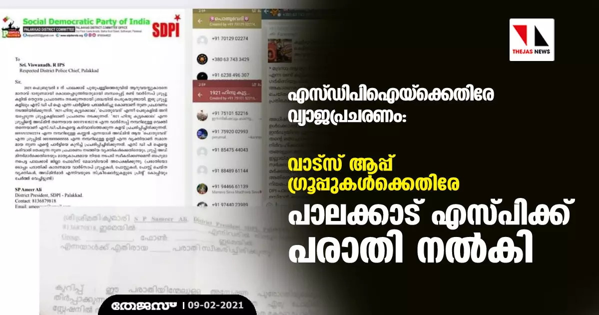 എസ് ഡിപിഐയ്ക്കെതിരേ വ്യാജപ്രചരണം: വാട്സ് ആപ്പ് ഗ്രൂപ്പുകള്ക്കെതിരേ പാലക്കാട് എസ്പിക്ക് പരാതി നല്കി