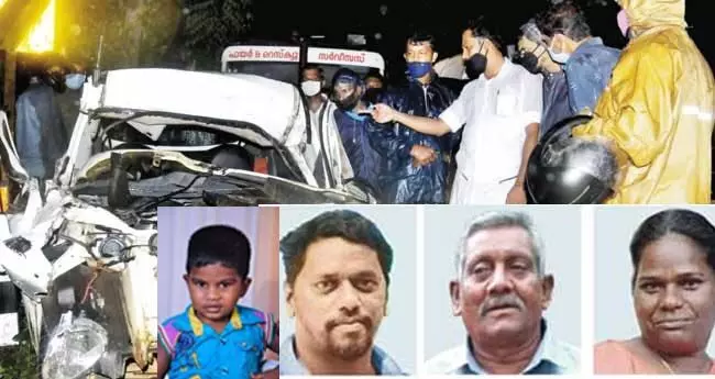 ഡ്രൈവര് ഉള്പ്പെടെ മുന് സീറ്റിലിരുന്ന രണ്ടുപേരെ നാട്ടുകാരും ഫയര്ഫോഴ്സ് ഉദ്യോഗസ്ഥരും ചേര്ന്ന് കാര് വെട്ടിപ്പൊളിച്ചാണു പുറത്തെടുത്തത്. മുരിക്കുംവയല് പ്ലാക്കിപ്പടി കുന്നപ്പള്ളിയില് കുഞ്ഞുമോന്റെ മകന് കെ കെ ജിന്സ് (33), പിതൃസഹോദരീ ഭര്ത്താവ് കുന്നന്താനം സ്വദേശി മുരളി (70), മുരളിയുടെ മകന് ചാന്നാനിക്കാട് മൈലുംമൂട്ടില് കുഞ്ഞുമോന്റെ ഭാര്യ ജലജ (40) എന്നിവരാണ് ഇന്നലെ മരിച്ചത്.