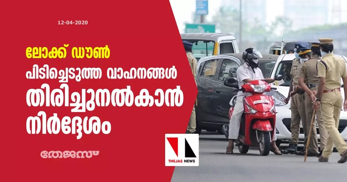 ലോക്ക് ഡൗണ്: പിടിച്ചെടുത്ത വാഹനങ്ങള് തിരിച്ചുനല്കാന് നിര്ദ്ദേശം