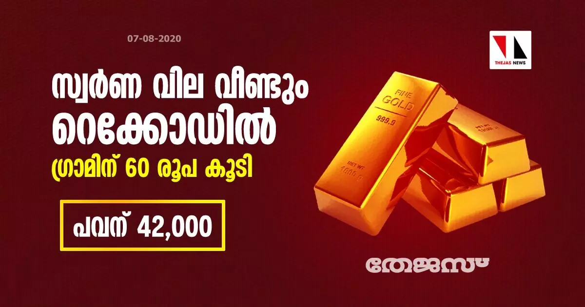 സ്വര്ണവില വീണ്ടും റെക്കോഡില്; ഗ്രാമിന് 60 രൂപ കൂടി; പവന് 42,000